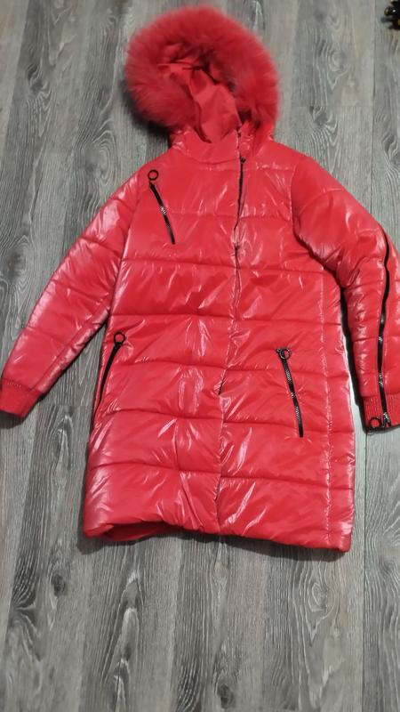 Наша курточка, в гарному стані, носили одну зиму, дуже тепла, підкладка фліс, опушка не кашлата, є пояс і петелька для ньго. Є два недоліка ф5 відпала залізна штучка з замка. ф9на декоративному замку що на рукаві загубила кружечок з собачки такий як на останньому фото, при носці не видно взагалі.