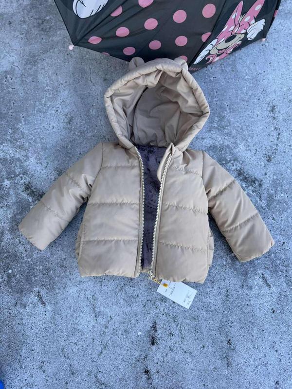 Курточка"Кармелька" Розмір: 8**********,110 Склад: Курточка виготовлений з високоякісного матеріалу, який забезпечує надійний захист від вітру та вологи. Внутрішня підкладка з гладенького нейлону забезпечує комфорт та легкість під час носіння. Синтепонова підкладка товщиною 150 г/м² гарантує тепло та комфорт у холодні дні. Особливості: -Капюшон із нашивкою вигляду вушок. -Зручні манжети на гумці для додаткового комфорту. -Низ жакета також виконаний на гумці, забезпечуючи ідеальну посадку та зберігаючи тепло. -Водонепроникна та вітростійка плащівка забезпечує захист від погодних умов, роблячи цю курточку ідеальним вибором для активних занять на свіжому повітрі.