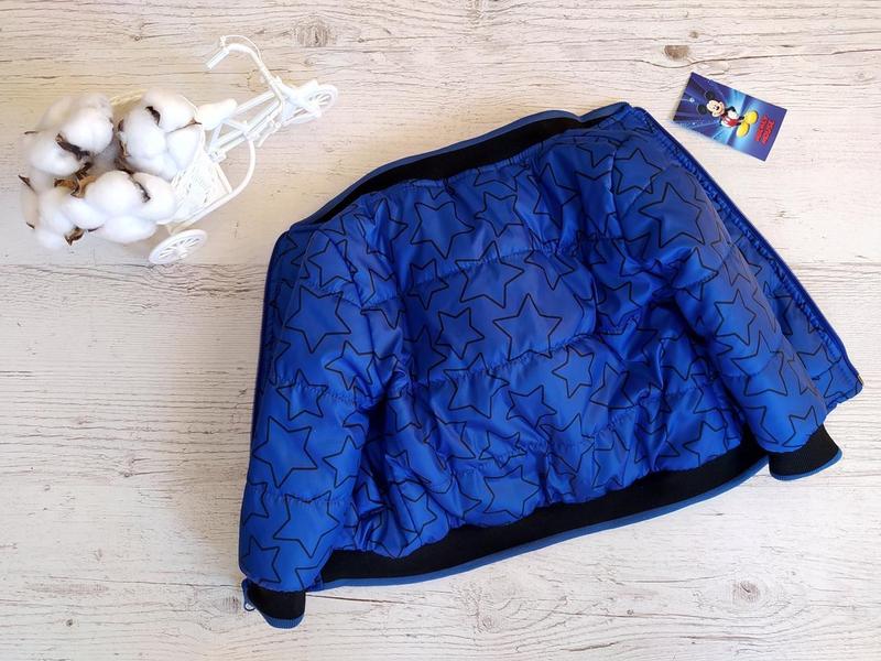 Бомбер "Зірочки" Розмір: 86.92.98.104.110 Склад: плащова тканина вітро/водонепроникна; -підкладка основи: 100; - підкладка нейлон принт; - на горловині , поясі та манжетах довяз; - гарний шеврон на полиці. Кольор. електрик є бокові функціональні кішені для цукерок