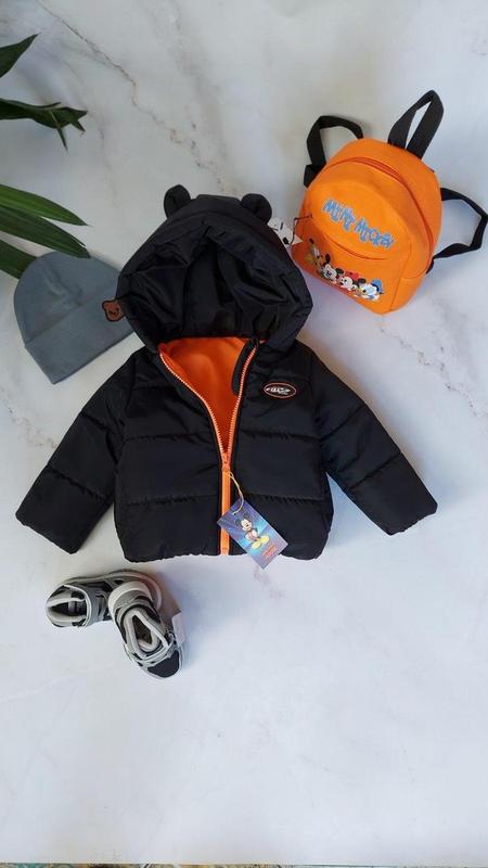 Курточка"Вогненні Вушка" Розмір: 8**********,110 Склад: Курточка виготовлений з високоякісного матеріалу, який забезпечує надійний захист від вітру та вологи. Внутрішня підкладка з гладенького нейлону забезпечує комфорт та легкість під час носіння. Синтепонова підкладка товщиною 150 г/м² гарантує тепло та комфорт у холодні дні. Особливості: -Капюшон із нашивкою вигляду вушок. -Зручні манжети на гумці для додаткового комфорту. -Низ жакета також виконаний на гумці, забезпечуючи ідеальну посадку та зберігаючи тепло. -Водонепроникна та вітростійка плащівка забезпечує захист від погодних умов, роблячи цю курточку ідеальним вибором для активних занять на свіжому повітрі.