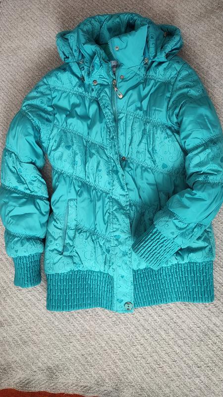 Курточка для девочки 12-13р. американского бренда в идеальном состоянии, сезон - зима, теплая! красиво набитая и дополнительно утепленная флисом, удлиненная модель, по линии низа и на манжетах широкая резинка, капюшон снимается.