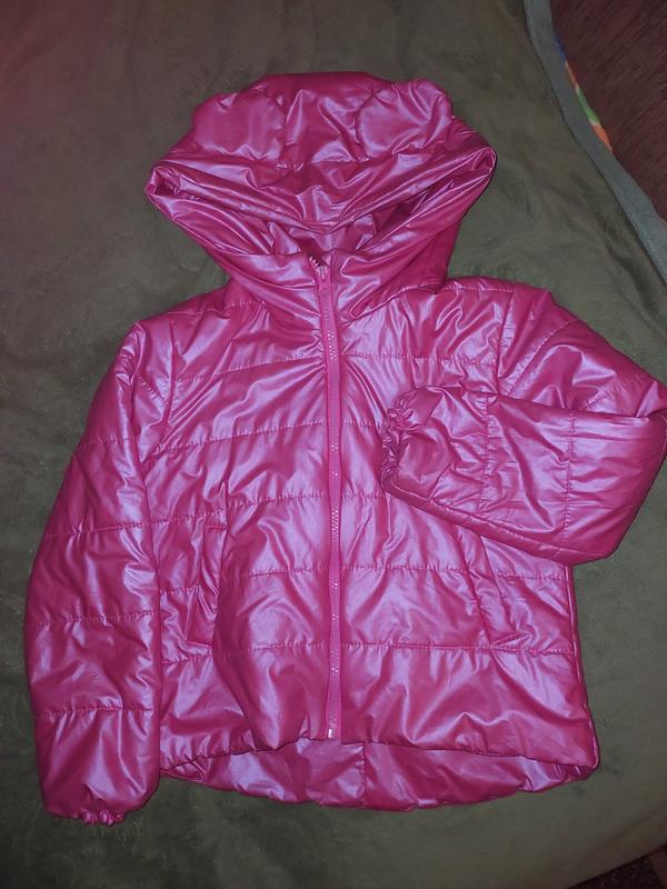 Куртка для девочки в очень хорошем состоянии. На рост 122. Ярко-розового цвета. Спереди чуточку короче, сзади длиннее. Куртка с капюшоном. Очень легкая. Заміри при потребі надам.
