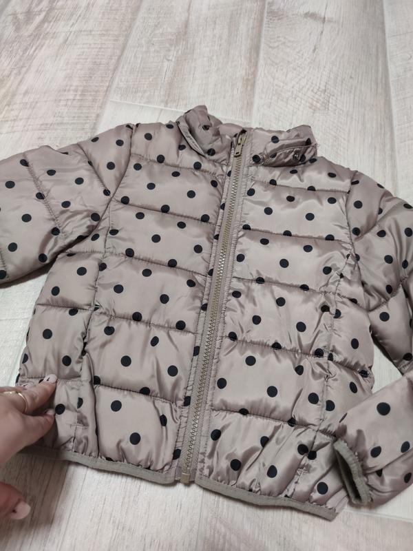 Легко стирать, быстро сохнет Есть маленькая зацепка, но совсем не заметна при носке. Также есть капюшон (пристегивается) Как будто ничего особенного принт горошек, но на девочке смотрится очень стильно😍