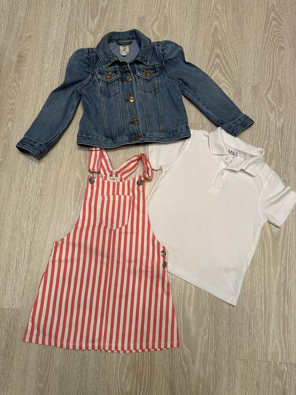 Стильный набор для девочки 4-5 110 Куртка River Island Сарафан F&F Футболка M&S Вещи в идеальном состоянии, без дефектов Заміри на останніх фото Больше фото в привод Цена за 3 вещи - 360гр Можно и отдельно : Куртка 180 гр Сарафан и футболка 180 гр Накладным платежом не отправляю Безопасное оформление или оплата на карту БЕЗ ТОРГУ!!!