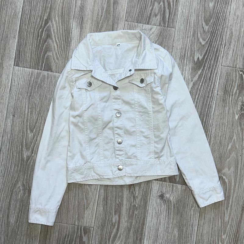 Джинсовая куртка белого цвета Состояние идеал 9-10 лет/134-140 Длина 46. Пог 36. Рукав 51