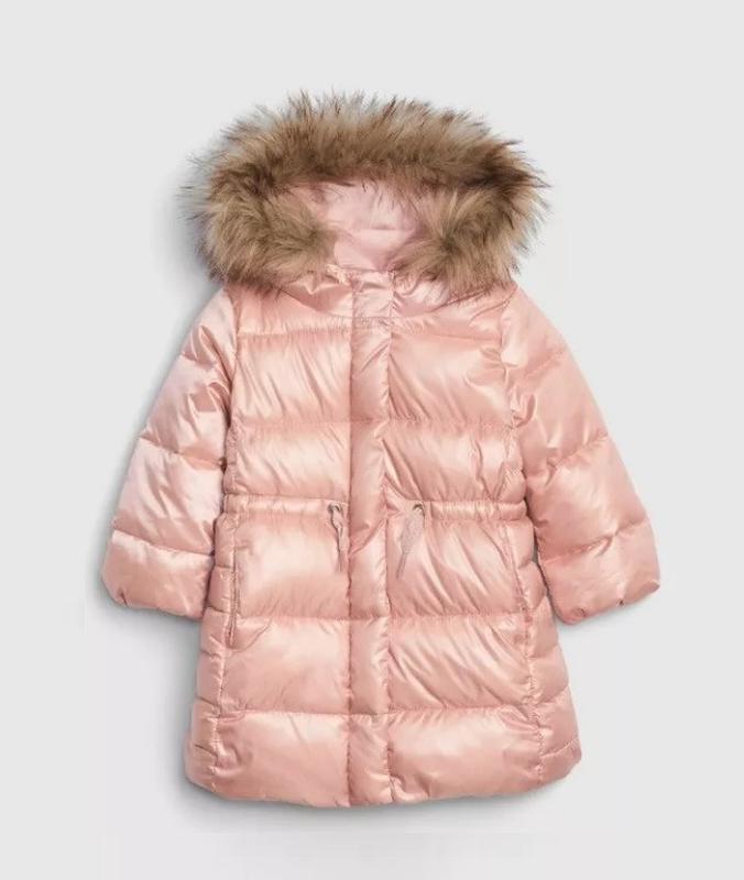 Зимняя куртка GAP Детская очень красивая, лёгкая зимняя удлинённая куртка GAP. Размер на 18-24 месяца. Верхний водоотталкивающий слой надежно убережет от дождя и снега, утеплитель - пух согреет и сохранит тепло. Микрофлисовая подкладка на спинке и на груди, утеплитель-пух, искусственный мех на капюшоне, который можно отстегнуть, змейка сверху закрывается планкой на кнопках, карманы по бокам на флисе, деликатная стирка.