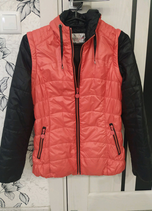 Виробник: Інший виробник Тип одягу: Куртки Розмір одягу: Інший розмір Куртка для дівчинки. Ідеальний стан.Куртка 2 в 1. З капюшоном, дві кишені. Гарно прошита, без недоліків. Рукава відстібаються( на замочках)