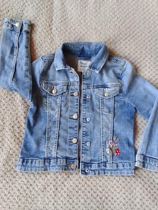 легкая джинсовая курточка размер 116. Длина 37 см., Ширина плечей 29 см., Ширина под ручками 33 см., Длина рукава 39 см.