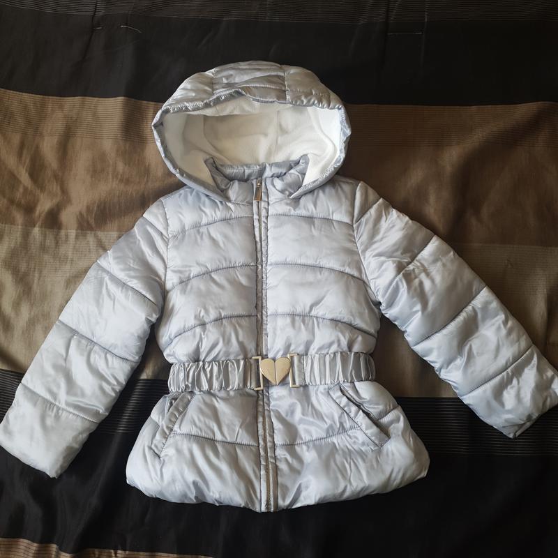 Куртка деми blukids для девочки по бирке 2-3 года 98 см рост, но по факту гораздо больше. Носилы до 4,5 лет. Укороченная, но теплая, ворот-стойка. На поясе застежка сердечко-е царапины. 2 малютки зацепки на одном рукаве. Все остальное в идеальном состоянии. Длина 44 см Ширина в груди 34 см Плече 7 см Рукав от плеча 36 см Ширина в плечах 26 см Пояс на резинке, растягивается на полную ширину куртки, не давит.