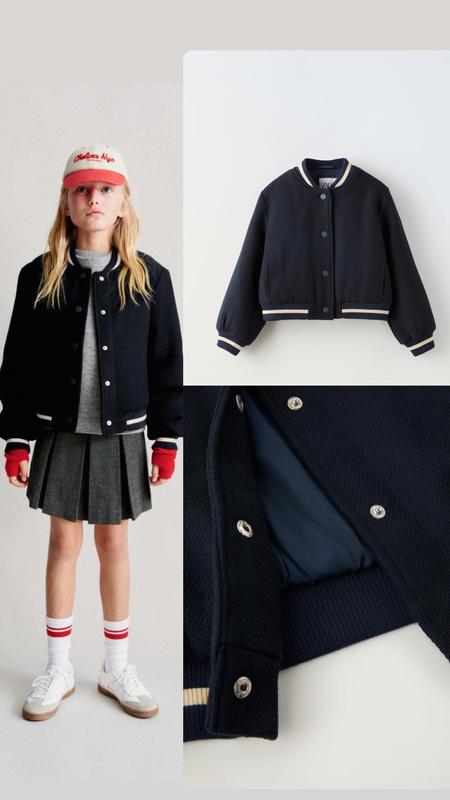 Ціна 1350 грн ❗️Доставка 5-6 днів❗️ Бомбер з високим коміром і довгими рукавами. Застібка спереду на кнопки. Передні кишені. Оздоблення в рубчик смугою. Зріст моделі 140 см, носить розмір 9-10. Морський | 8491/707
