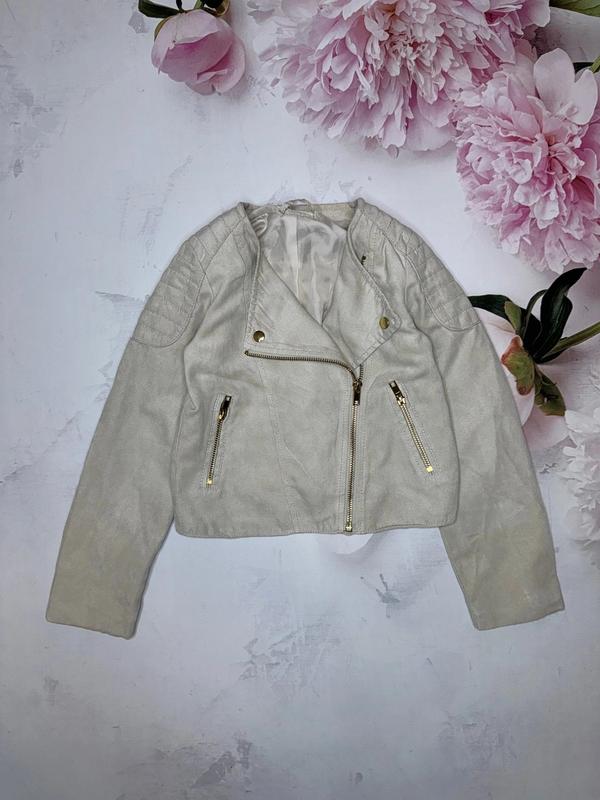 косуха из мягкой искусственной замши На курточке маленький воротник стойка с кнопкой а также косая молния спереди. Карманы на молнии,стеганные накладки на рукавах, на подкладке 5-6 лет длина 37. ПОГ 33. рукав 41 6-7 лет H&M (2) длина 37. ПОГ 33. рукав 44