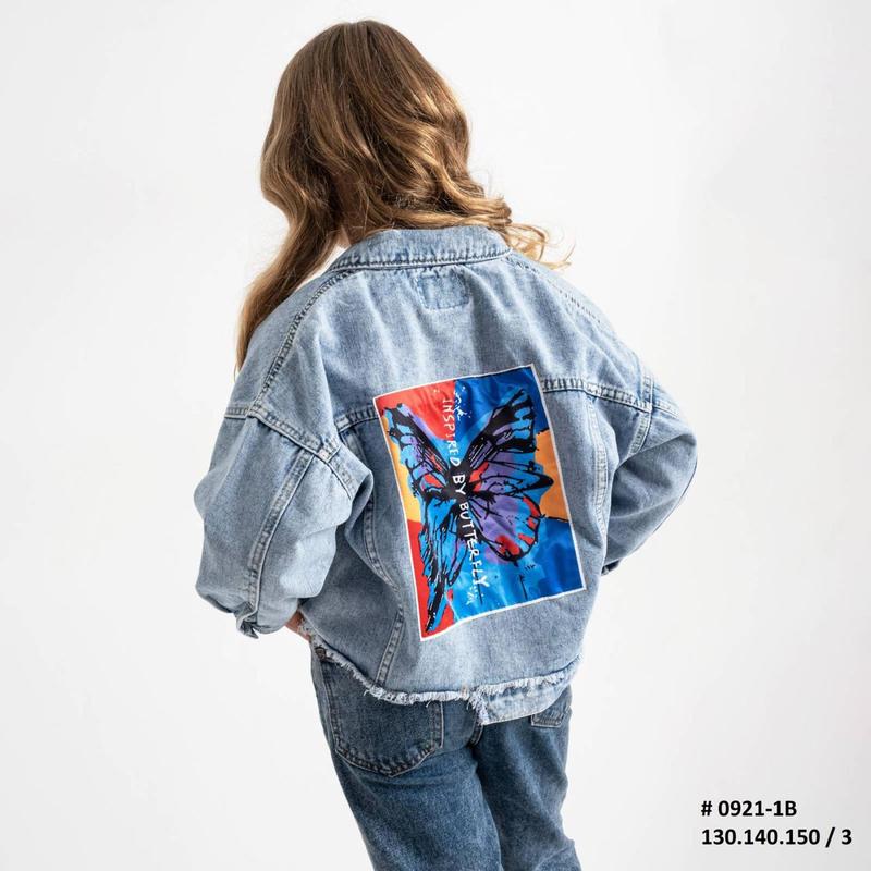 Джинсовая куртка для девочек Размер 128 -130 рост - длинна 42 пог 41 рукав 41 140 рост - длинна 45 пог 42 рукав от горловины 45 150 рост - длинна 45 пог 55 рукав 47 -