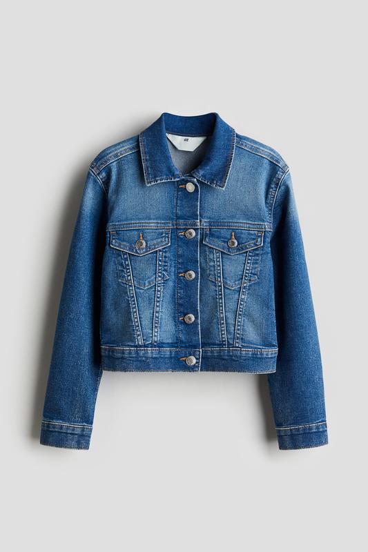 Джинсовая куртка H&M на 13-14 лет на р.164. Куртка из стираного денима с воротником и пуговицами спереди. Кокетка спереди и сзади, манжеты на пуговицах и ложные нагрудные карманы с клапаном и пуговицей. Без подкладки. Состав. Хлопок 79%, полиэстер 20%, эластан 1%.