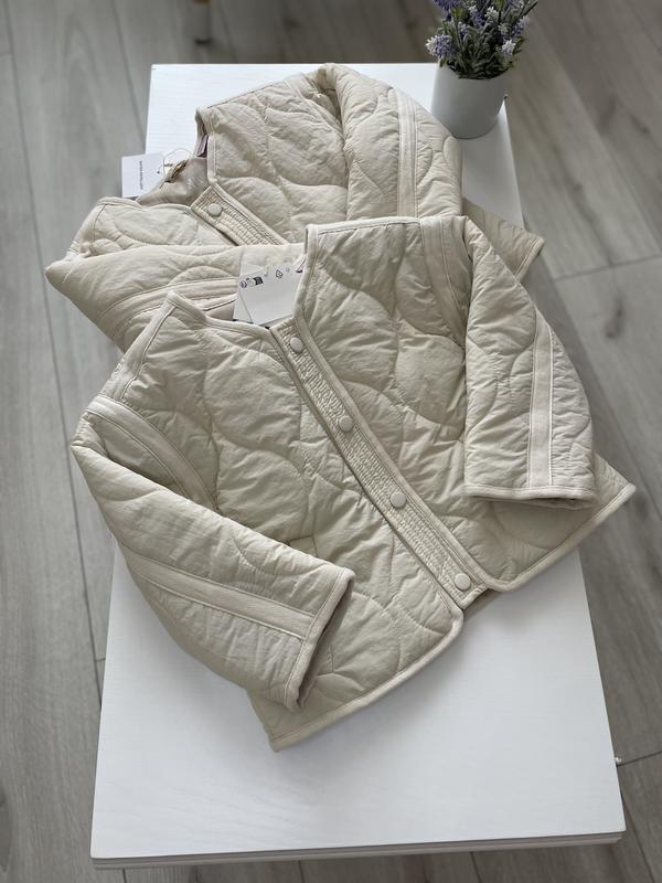 Легенька стьобана куртка бежевого кольору . В наявності від 92 по 104 Заміри 98: довжина по спині 38 см, ширина під руками 37 см, рукав з коміром 42 см. Заміри 104: довжина по спині 41 см, ширина під руками 38 см, рукав з коміром 45 см.