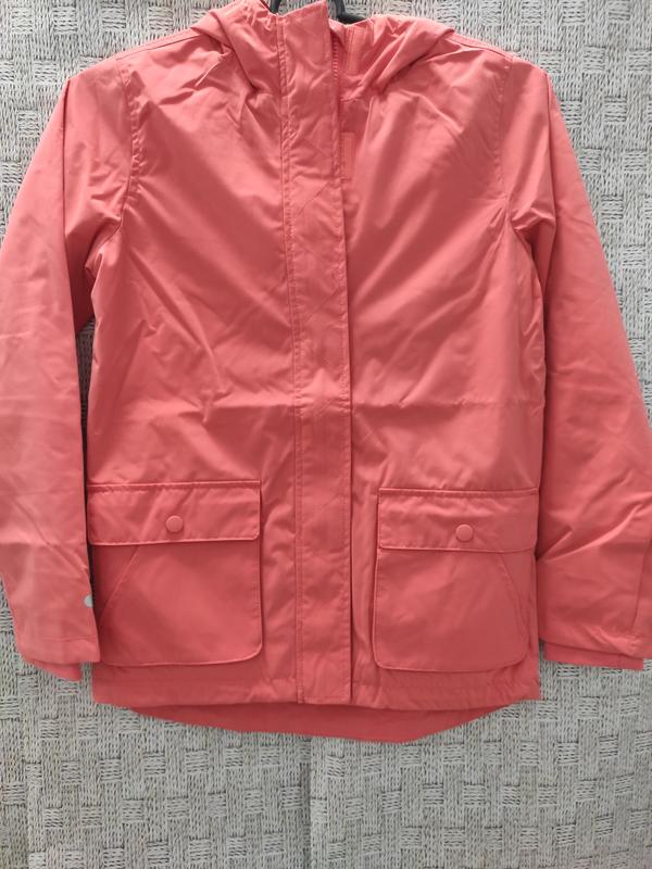 Осенняя курточка. Подкладка сеточка. Внизу стягивается. Сверху материал плотная плащевка. Водонепроницаемость высокая - отвлажнена к указанному на бирке - 6 капель. Капишон тоже стягивается. Застежка - замок и липучки. Имеются существующие размеры - 140 и 152. Замеры сделать по желанию