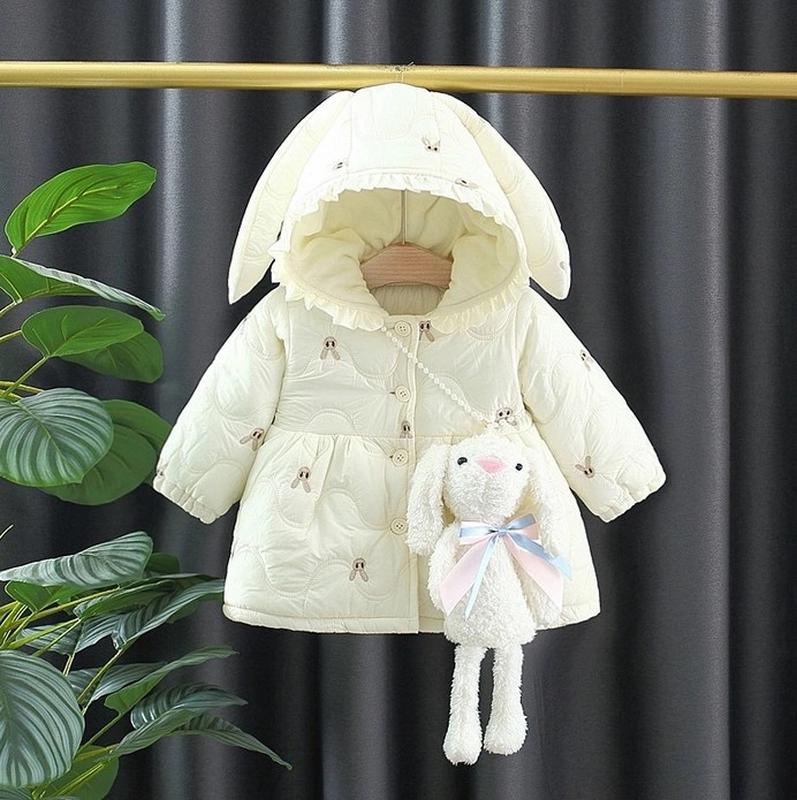ЦИНА РАЗМЕР 80 (3 шт) 90 (3 шт) 100 (3 шт) 110 (3 шт) Пальто весна/осень/деми верх полиэстер утеплювач синтепон (тонкий шар) подклад микроплюш застегивается на пуговицы есть капюшон іграшка зайченя в комплекті Замеры: р.80 - длина 35 см, ширина 30 см, плечи 23 см, рукав от плеча 26 см р.90 - длина 37 см, ширина 33 см, плечи 25 см, рукав от плеча 28 см р.100 - длина 40 см, ширина 35 см, плечи 26 см, рукав от плеча 31 см р.110 - длина 44 см, ширина 36 см, плечи 27 см, рукав от плеча 33 см