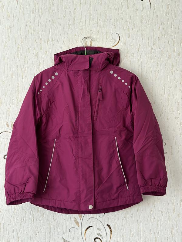 Дівчача куртка в відмінному стані. Флісова підкладка відстібається. Водовідштовхуєма тканина. Пог 44,ширина по низу 46,довж переда 55,довж заду 57, довж рукава по шиї 59, на ріст 140
