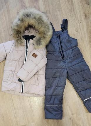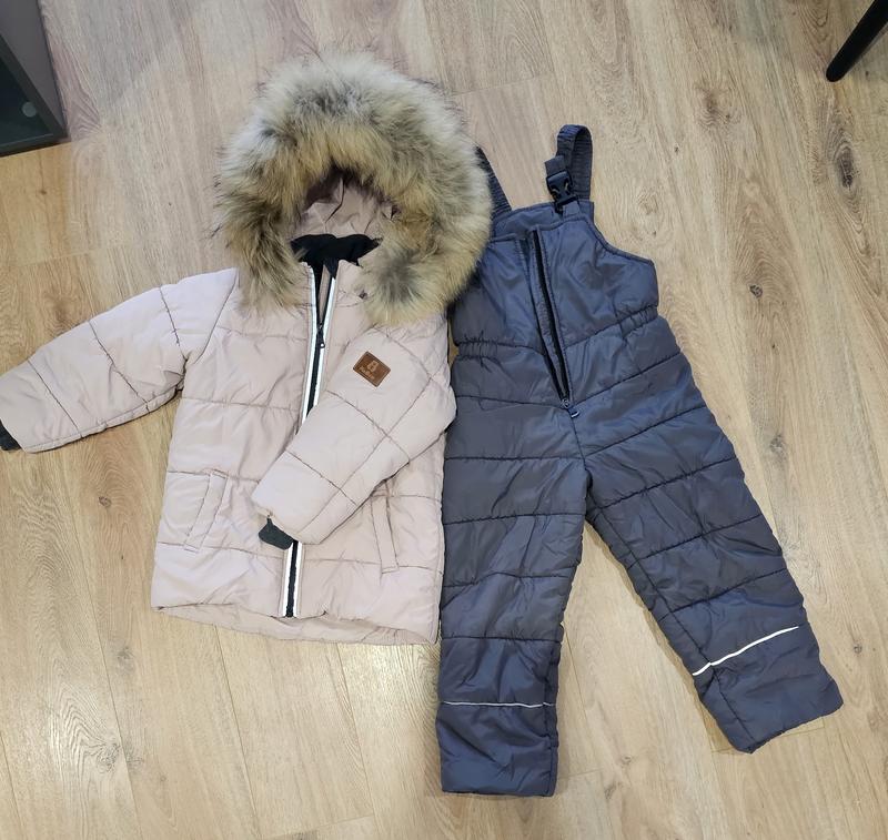 В идеальном состоянии, куртка с синтетическим наполнителем на флисовой подкладке. Капилов и мех снимаются отдельно на молниях. На рукавах широка резинке. По длине - прикрывает спички. Штаны также утеплен синтетическим наполнителем, не проказывают, внизу на подкладке резинка, что предотвращает попадание снега и воды в обувь. Есть светоотражая элементы. Все молнии и застежки работают исправно. Шлейки регулироваться. Костюм ребенку удобно самостоятельно снимать-одевать Легко стирать, очень теплый. Эту модель приобрели 3 зимы подряд. Размер 104-110