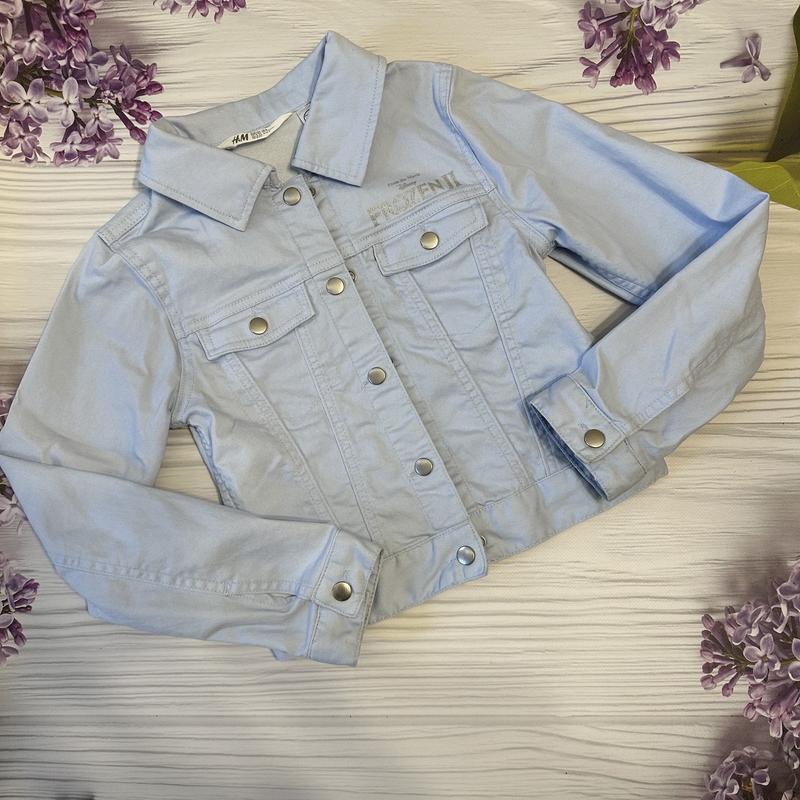 джинсовая куртка h&m frozen 8/9 лет рост 134 плечи 31 под подмышками 36,5 длина от плеча 37 рукав 50 Стан - идеальный