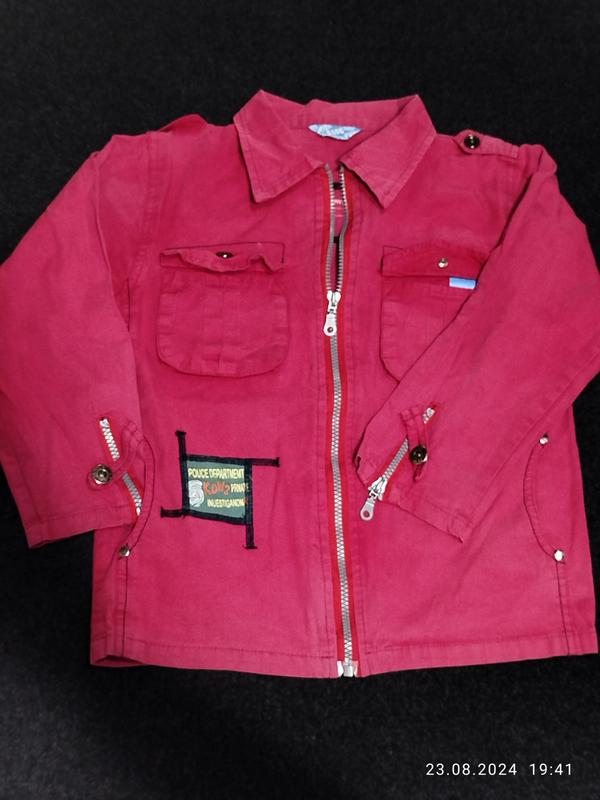 Хорошенькая лёгкая курточка красного цвета в очень хорошем состоянии, есть пятнышко на рукаве. Длина изделия по спинке от плеча 50 см, полуобхват груди 41 см, от плеча до плеча 35 см, длина рукава 42 см. Ткань не тянется. Модель 4594Т