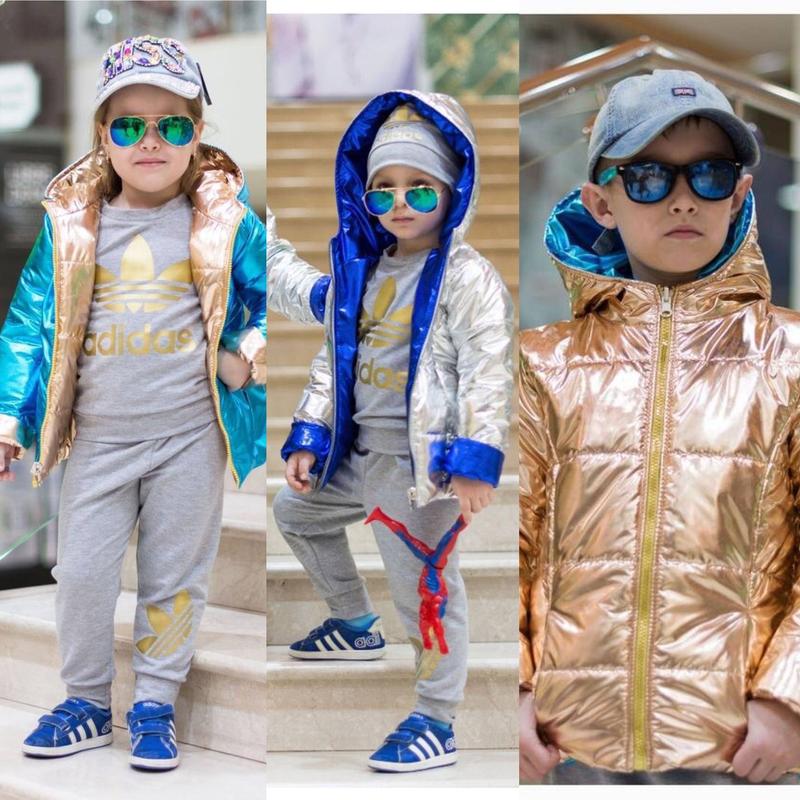 ‼️№1868 КУРТКА ‼️⤵️ ➡️№1868 Стильная ультра блестящая двухсторонняя куртка девочка+мальчик ! Ткань - плащевка на силиконе 150 Два кармана Цвет - серебро+электрик синий серебром Высокого качества пошива! Размеры - 98-104,104-110