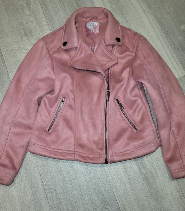 Курточка под замш для девочки, на рост 128 см (по бирке). Полуокружность грудины 33см, длина рукава- 40 см (от плеча), длина куртки- 37 см. Состояние очень хорошее.