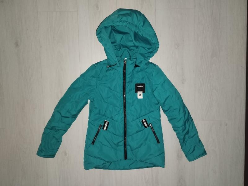 Куртка деми, по бирке размер 140. Замеры : длин.от плеча перед/зад - 53см/57см, пог - 40см, рукав от плеча - 52.5см. На последних фото есть незначительные нюансы: на капюшоне на завязках с одной стороны шнурочек покрутило и есть небольшое повреждение (дирочка) подкладки. Нюансы учтены в цене. Замки все рабочие, капюшон снимается. Бирюзовый цвет.