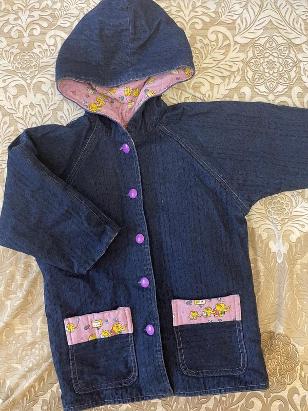 Утепленная куртка-пальто на девочку, стильная подкладка, джинс. Заміри на останніх фото