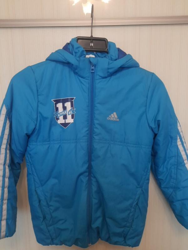 Куртка яркого голубого цвета. С капюшоном. Длина 56см,ширина под руками 37см,плечи 34см,Длина рукава 48см.На возраст 8-9 лет. Теплая осень, весна.