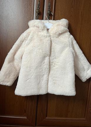 Ніжно персикова куртка-шубка,дуже мила,має капішон. Одягнута 1-2рази.