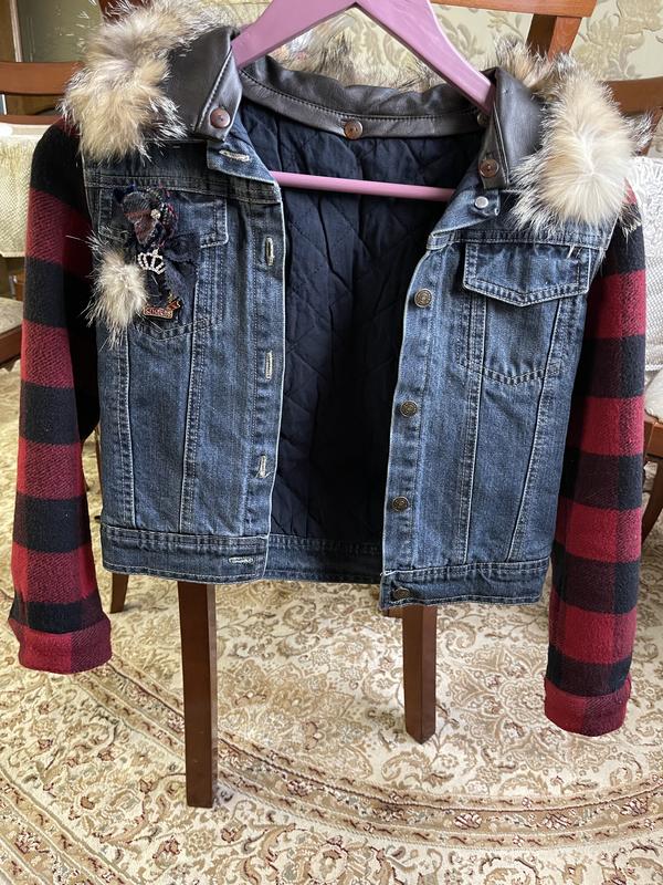 Джинсовая курточка LAPIN House ( оригинал) для девочки, утепленная, мех из воротника отстегивается.