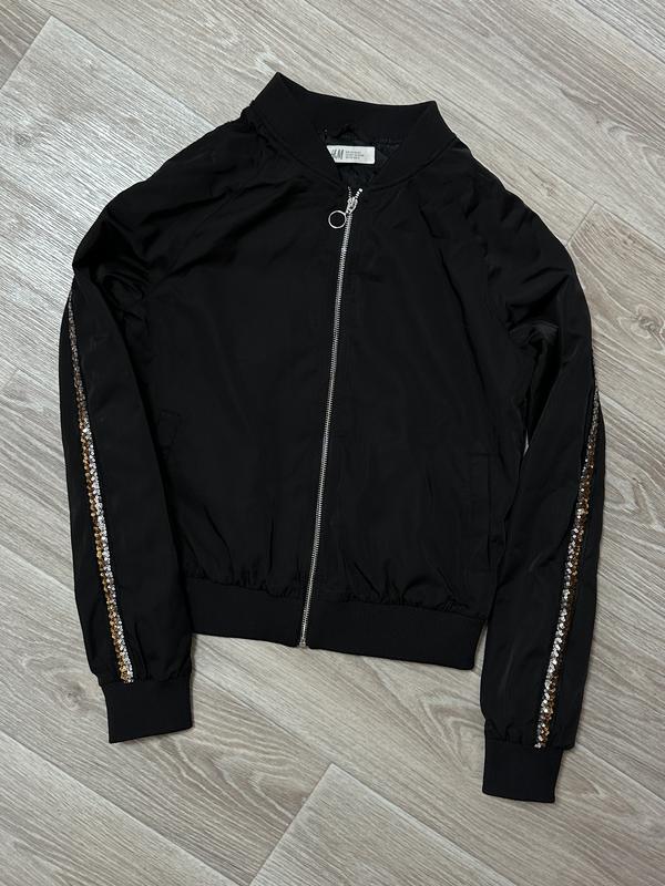 Куртка бомбер на подкладке полиестер. Без наполнителя. 2 боковых кармана 🏷H&M 🔹14+/164р Длина 59. ПОГ 48. Рукав от шеи 77.