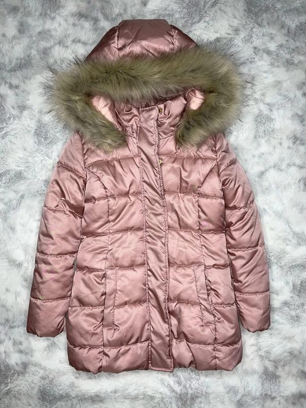 Удлиненная куртка пальто Подкладочная ткань полиестер Капюшон съемный Высокая горловина Защита молнии 2 кармана Состояние отличное без дефектов 🏷H&M 🔹4-5 лет Длина 53. ПОГ 38. Рукав 38