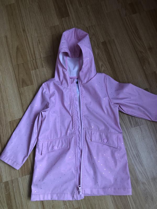 Водонепроницаемая, водоотталкивающая курточка для девочки4-5 лет. Дождевик. Без повреждений. Плечи 30 см, длина по спине 51 см, рукав 37 см,,, под руками 37 см.Колир бледно розовый