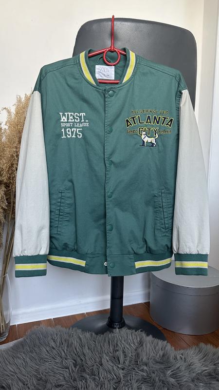 Зелений боибер Zara на кнопках длина изделия - 54 см длина рукава (внутренняя)- 40 см