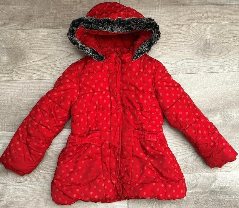 Тепленькая курточка внутри мех Размер 6-7 лет рукав от плеча 43,5 см резинка 2, 5 + плечо 7см по внутр шву 32см ширина 38см длина по спинке 54см состояние очень хорошее, без дырок, пятен, затяжек, местами стерлось бархатное напыление в кружочков, других дефектов нет