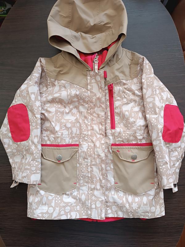 Продам фирменную куртку для девочки, с флисовой подстежкой (можно носить отдельно как кофточку). Состояние красивое. Длина по спинке 47 см, по переду от плеча 43 см, рукав 34 см, по комди 34 см