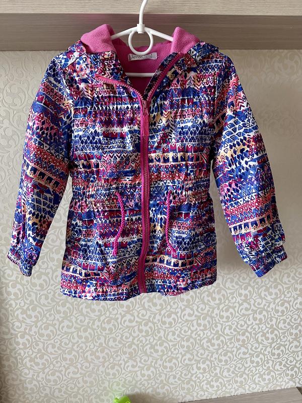 Куртка с середины на флисе на девочку 4-5 лет. Рукав 39 см, длина куртки спереди 47 см, сзади 55 см. Без дефектов.