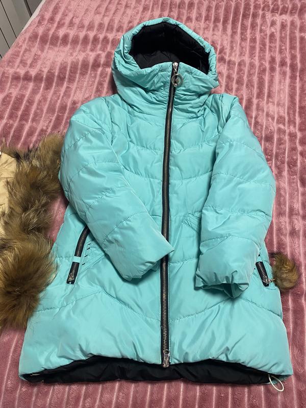 Зимова дуже тепла куртка, ззаду трохи нижче чим спереду, знімне хутро.