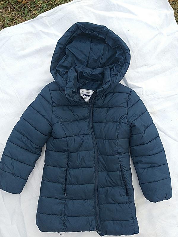 Фирменная демикуртка для девочки. Застегивается на молнию. Карманы также на молнии. Длина по спине 51см, ширина под подмышками 34см, длина рукава от плеча 38см, плечо 7см, высота капюшона 24см (не снимается)