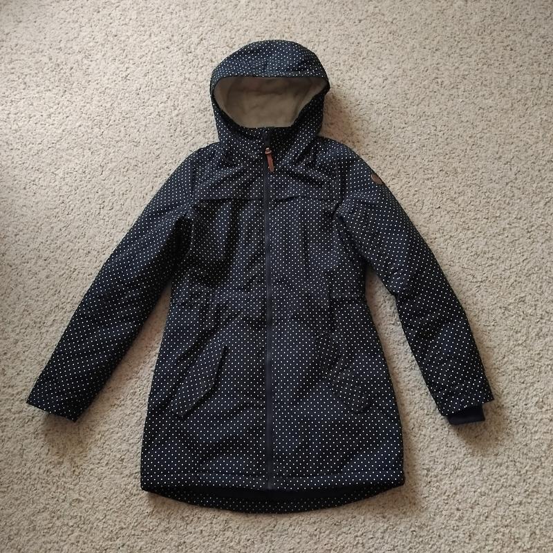 Осенняя куртка б/в для девочки-подростка (размер указан S). Состояние - удорожняющий, почти не носили. Куртка на синтепоне и меху (мех не белое, как кажется на фото - оно цвета топленого молока), в рукавах синтепон, на талии затягивается изнутри, рукава на трикотажной резинке. Сзади куртка длиннее, на ветру не продувается. Цвет темно-синий в белые горохи. Длина куртки по спине около 75 см Длина рукава примерно 62 см П/о талия 42 см Если надо - скину дополнительные фото и замеры.