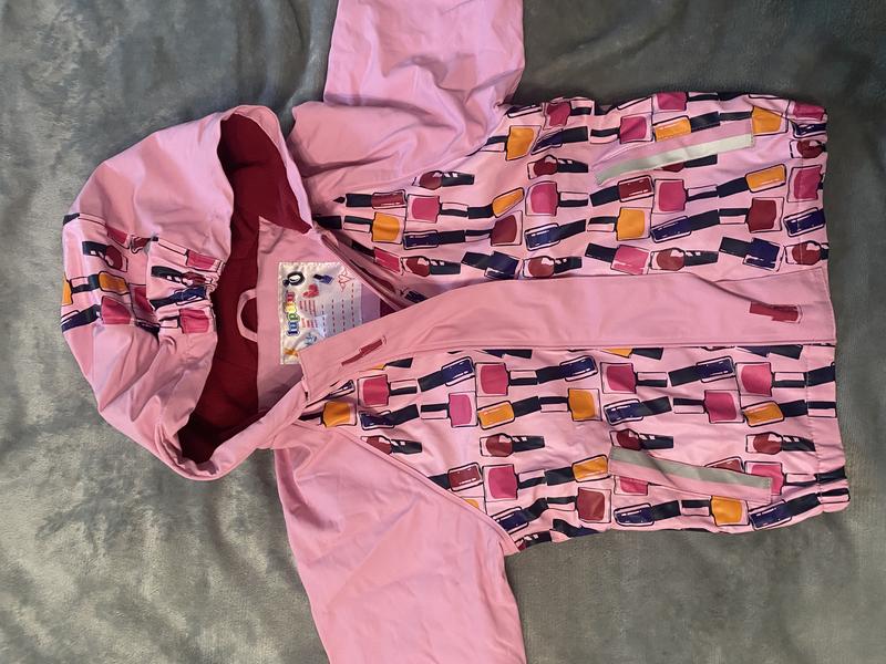 Куртка водонепроницаемая. Защитит от ветра внутри флиска есть капюшон и карманы на молнии. Есть светоотражающие полоски.