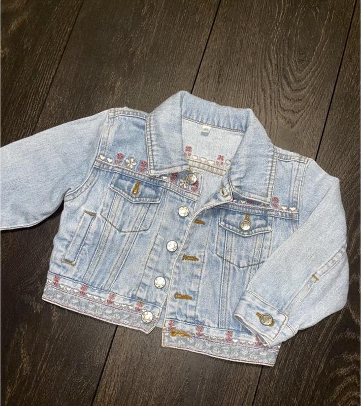 Стильная и удобная куртка, которая станет отличным дополнением к детскому гардеробу. Вышивка добавляет уникальности и яркости. Размер: 2-3 года Материал: хлопок Вышивка: яркая, устойчивая к стирке Отличное состояние, мало носилась но есть маленькое пятно (можно отстирать)