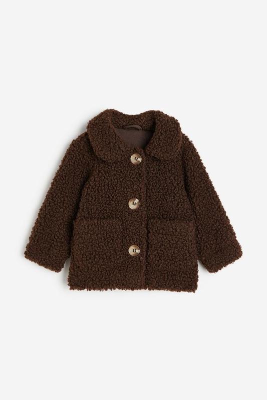 Стильна, зручна та тепленька курточка в темно-коричневому кольорі H&M (США). Ідеальна курточка для маленького ведмедика. Відмінна якість. Куртка з м'якого флісу Тедді. М’яко заокруглений комір, відкриті передні кишені, злегка спущені плечі та довгі рукави з прикритою гумкою на манжетах. Підкладка з бавовняного трикотажу. Склад: 100% поліестер, підкладка - 100% бавовна. У наявності: 1,5-2 рочки ❌ 2-3 рочки 3-4 рочки