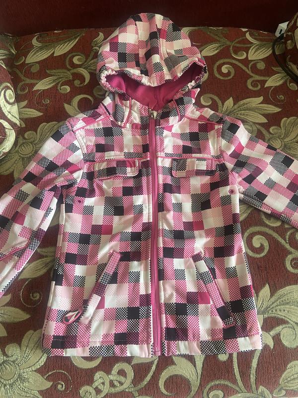 Фирменная куртка на флисе. Не продувается ветром, рукавчики-манжеты на липучках. Очень легкая, но теплая.