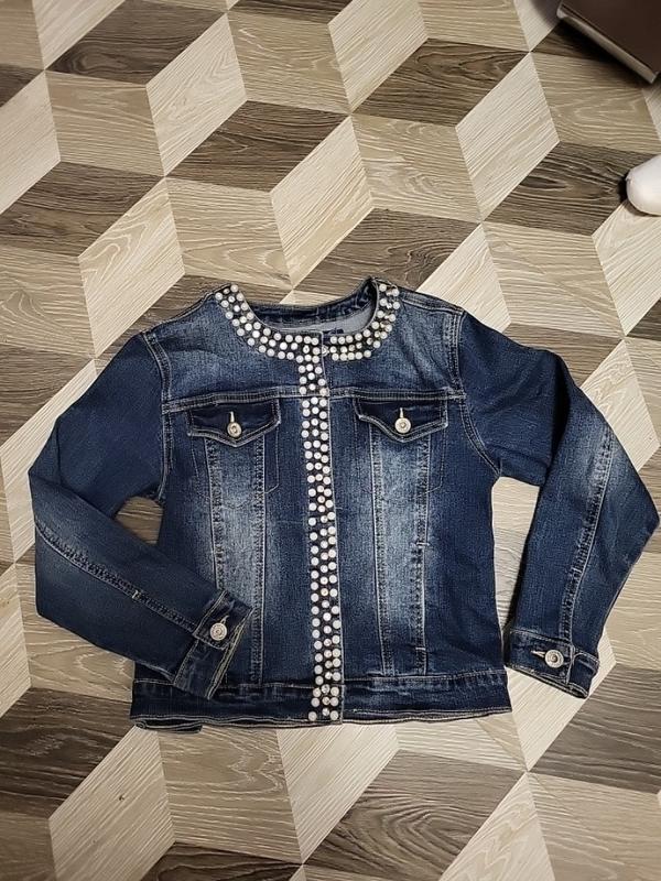 джинсовая куртка, состояние идеальное, надо только пришить заклепки одну потому что оторвалась, а нижнюю внутри пережить другим боком. По наборке на 12 лет, но уменьшенная, реально на 10-11.