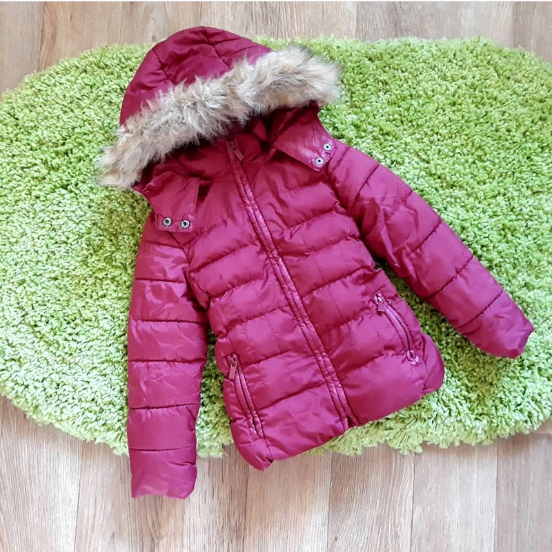 Классная зимняя курточка-пуховик фирмы Zara в отличном состоянии.Чуть сбит пух внизу.На теплоту это не влияет.Капюшон отстёгиватся,карманчики на молнии. Сезон:холодная осень-зима.Можно в небольшой мороз носить. Размер 4-5 лет,на рост 110 см. Снаружи водоотталкивающая ткань,внутри синтепон. Замеры: Длина от плеча до низа 44 см Ширина под ручками 34 см Рукав от плеча 40 см Плечи 30 см