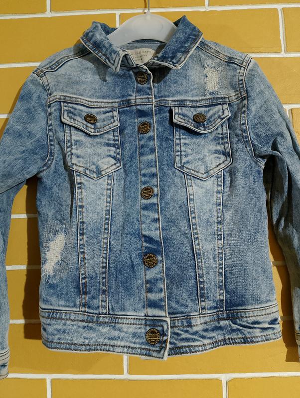 классная джинсовая курточка на девочку 6-7 лет с потертостями очень клёвая красивая