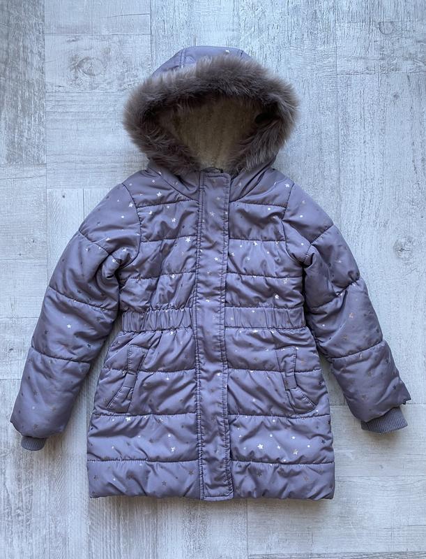 Куртка на хутряній підкладці польського бренда Cool Club. Гарний бузково-сірий колір, у Зірочки. Дуже практичний, не мазкий. Розмір 4 роки, зріст 104 см. Заміри: довжина від плеча 56 см, ширина під руками 35 см, рукав від плеча 40 см + 3 см манжет. Стан загалом дуже гарний, але є одна затяжка на рукаві (у носінні не помітно), і внизу на блискавці трохи розхиталися зубці, потрібно акуратно застібати (можливо, потрібна заміна блискавки).