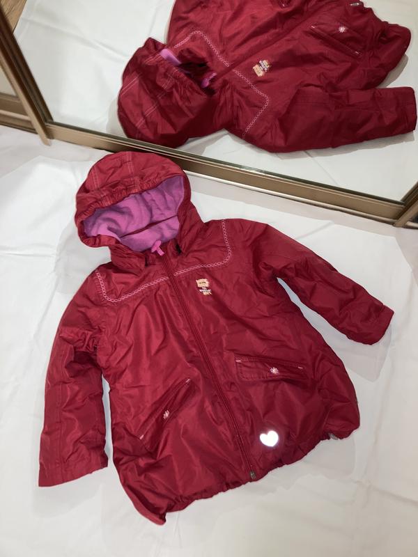 куртка зимова 98 см, 3 роки, на 4 теж підійде. Ми носили в холодну осінь, єврозиму до -5. Дуже якісна і тепла. Верхня тканина міцна і водонепроникна, утеплена синтепоном і флісова підкладка всеиедині. Прикриває попу, знизу затягується по ширині. Капюшон на кнопочках, в рукавах манжети. Стан чудовий, без зауважень, колір насичений. Заміри: довжина 52 см, ширина 40 см, рукав 38 см